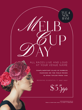 Melbourne Cup Elegant Lady in Black Hat Red Background – Poster Template – Easil